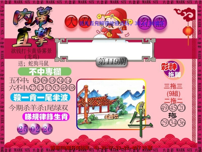 | 119期三肖 | 蛇羊牛 | 蛇49中 |